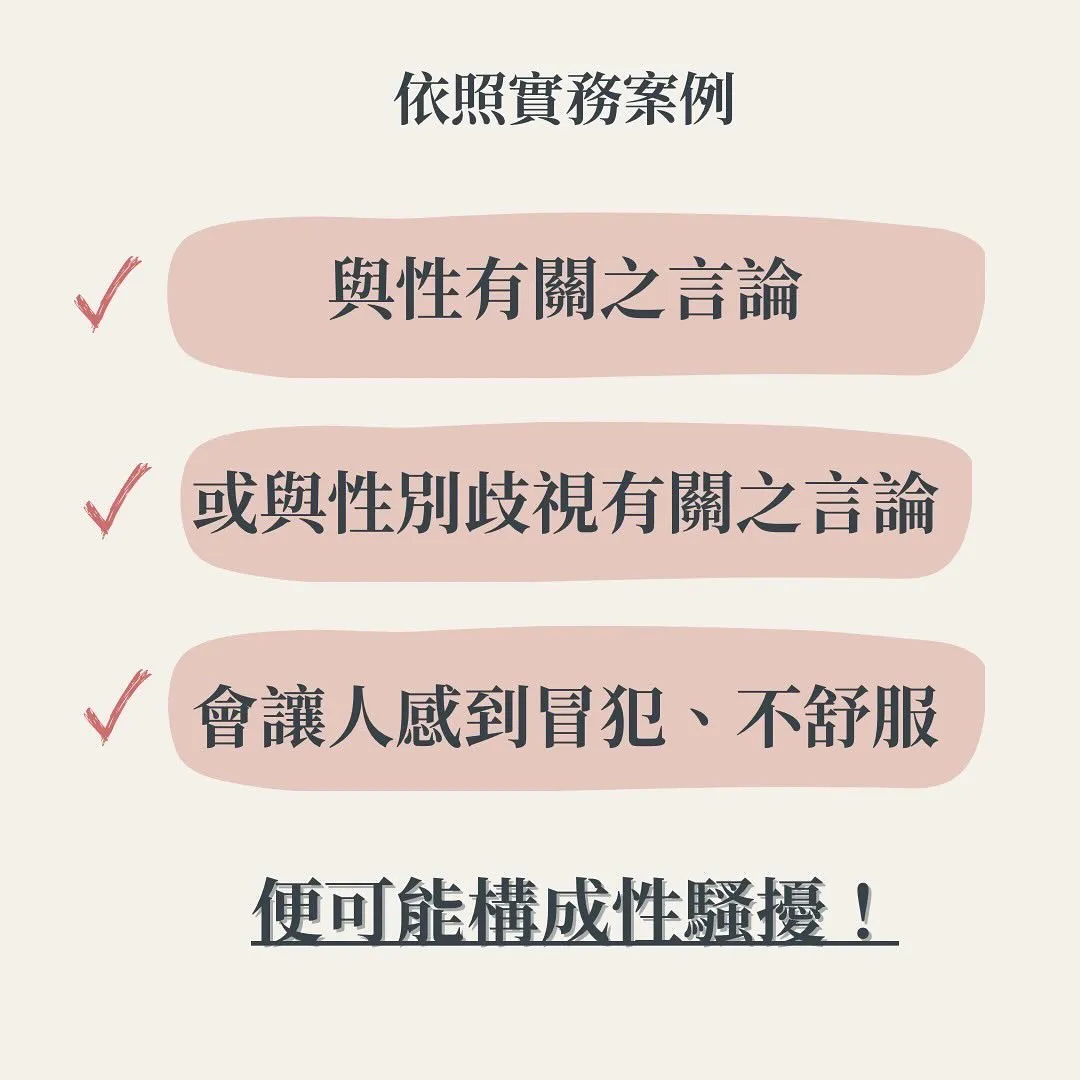 根據《性別平等工作法》與法院實務見解,以下情況都有可能被認定為性騷擾: